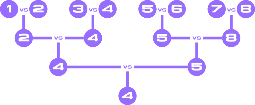 Người/đội thắng của mỗi cấp độ** sẽ tiếp tục thi đấu để xác định người thắng của cấp độ tiếp theo.